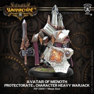 The Avatar of Menoth is a heavy beatstick warjack that stands apart from a battlegroup and generates its own focus. One of the hardest hitting warjacks around, the Avatar is also the most expensive around.
