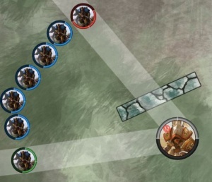 Refer to the first screenshot. When the Trenchers shoot at the grey Indictor, it is obviously going to get a cover bonus vs the red Trencher's attack and will get zero cover vs the green Trencher's attack. So somewhere along that arc of blue Trenchers it must switch from "cover applies" to "cover doesn't apply". How do we figure where that change occurs?