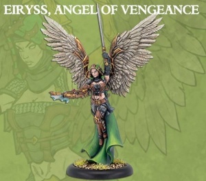 This incarnation of Eiryss is more focused around killing spellcasting units and solos or breaking up buffed infantry than her threat to casters or warbeasts. Disruption still lets her annoy jacks, but with the volume of attacks she can put out on the charge she can quite easily knock out spell buffed basic troopers and soak resources from the caster in doing so. Witch Hunter ensures that nothing short of a warcaster will cast while close to her, forcing order of activation issues to keep her tied up. She stands out as the only solo version of Eiryss that can be a requisition option.